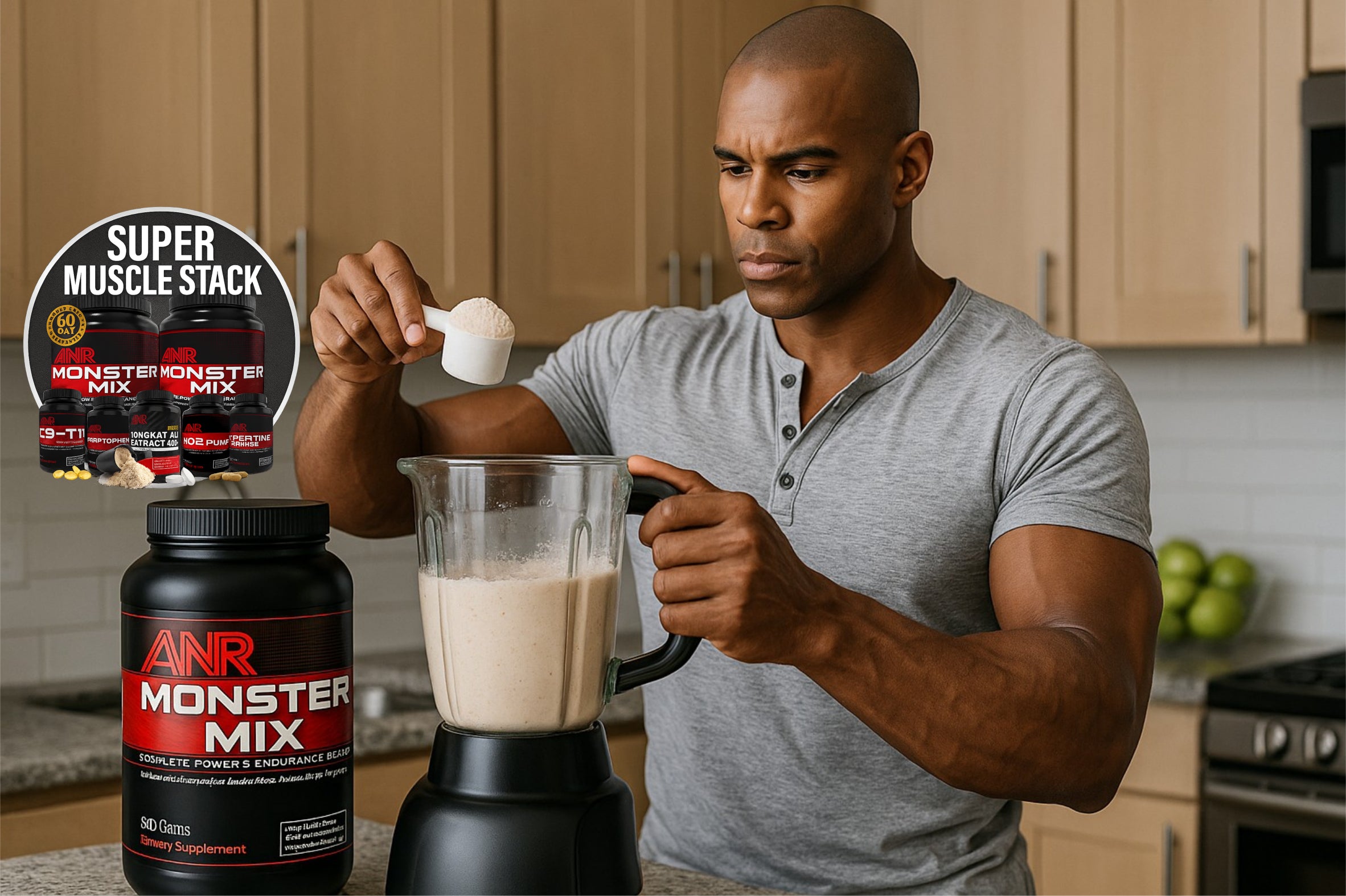 The Super Muscle Stack delivers six proven formulas working together for faster gains, explosive strength, and real 30-day results. Premium protein, testosterone-support adaptogens, creatine, nitric-oxide drivers, and pre/post-workout fuel—all engineered to help you train harder, recover quicker, and pack on serious size. Unleash the beast and transform your body in 30 days.
