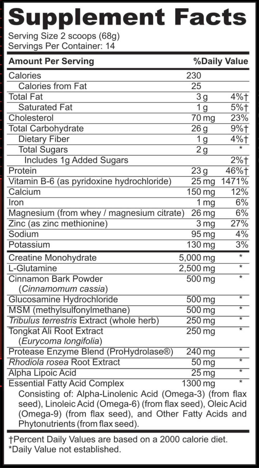 Monster Mix is fortified with 17 tested muscle-building agents, including ultra-clean ion-exchanged whey protein isolate and concentrate, grams of creatine monohydrate, 5 grams of glutamine, along with generous dosages of EFAs and BCAAs.